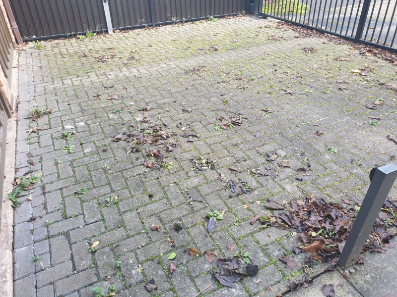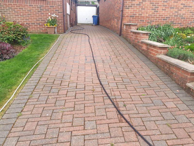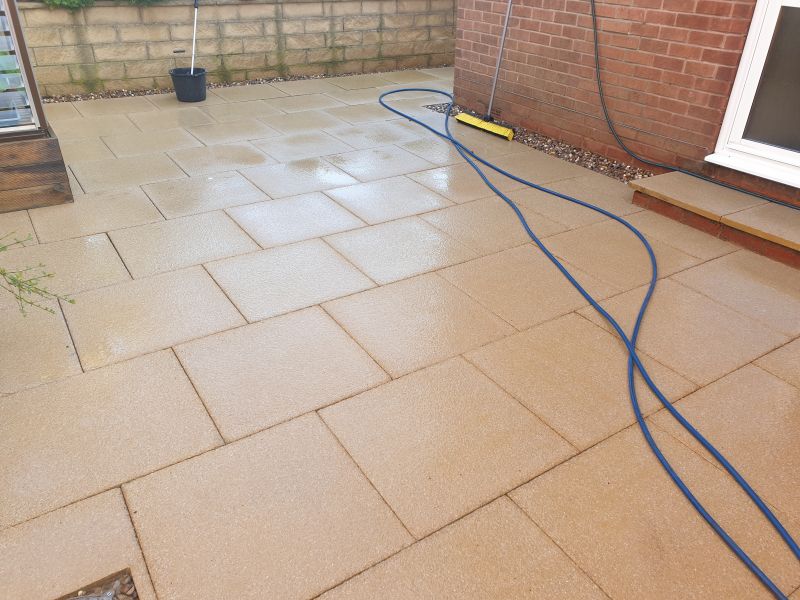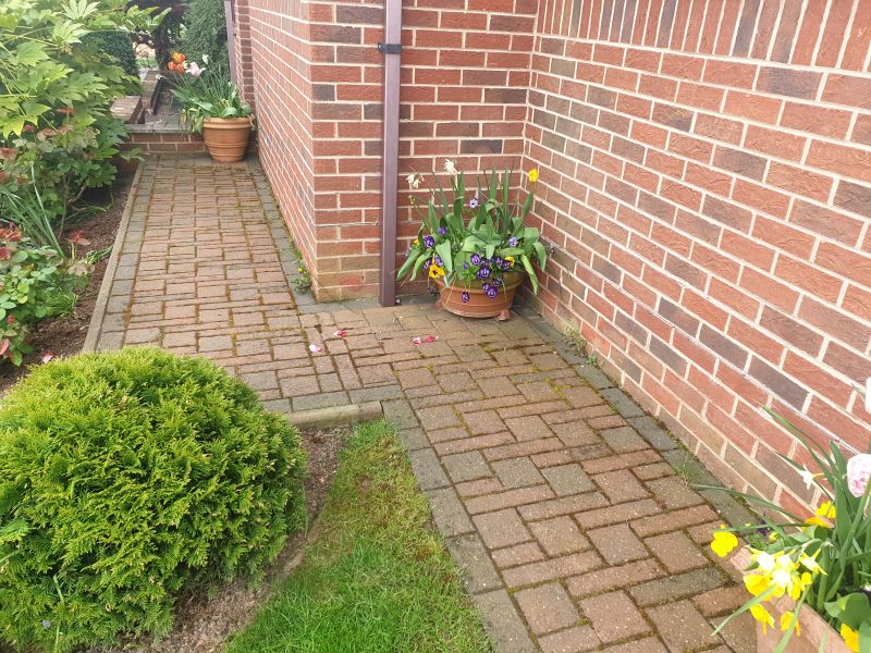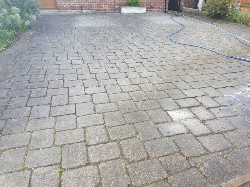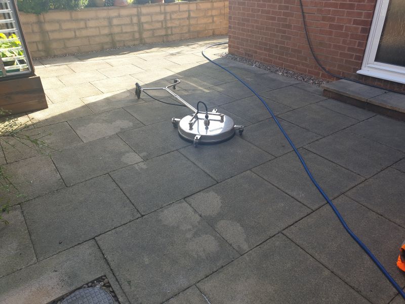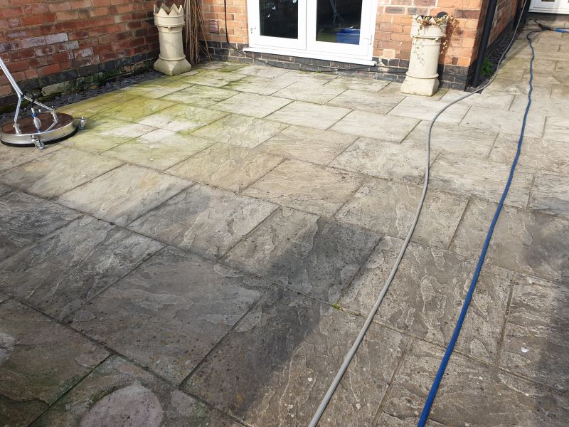 Slabs after being pressure washed and soft wash treatment applied in Wollaton