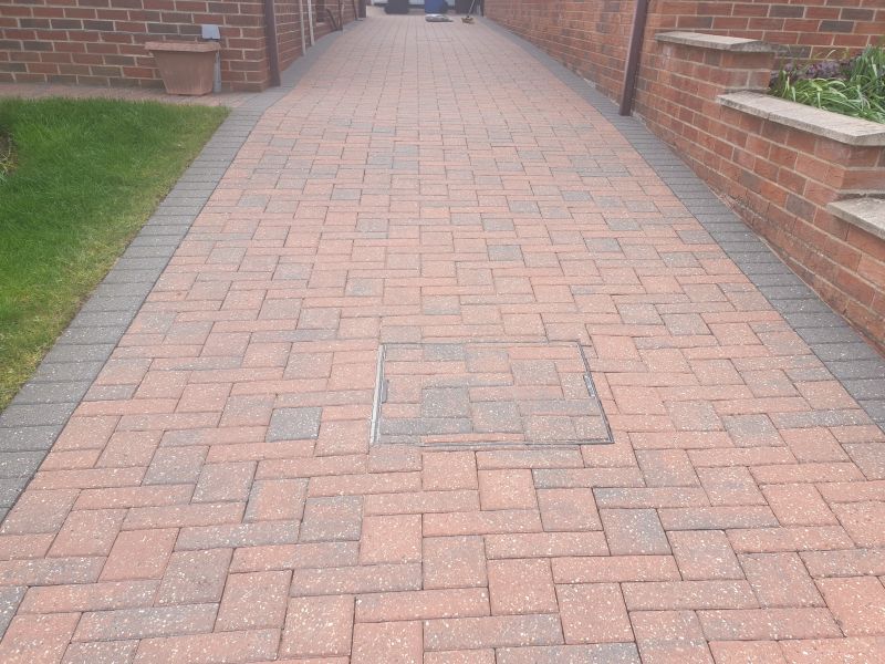 Block paving path after being pressure washed and re-sanded in Awsworth