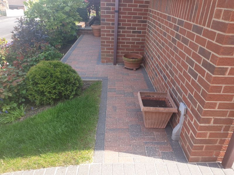 Block paving pathway after being cleaned and re-sanded in Awsworth