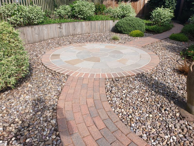 Block paving patio after being cleaned and re-sanded in Awsworth